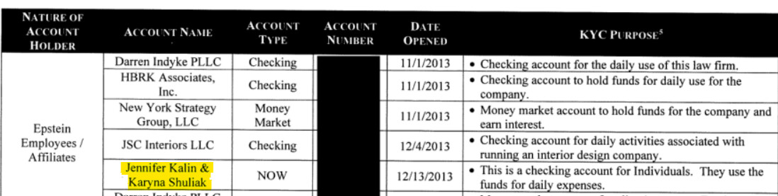 Also, I think you can replace < the redacted > in the ← redacted → & Karyna Shuliak with Jennifer Kalin. I’ve only found these two names together when it comes to financial accounts, which can be seen in: EFTA01681865