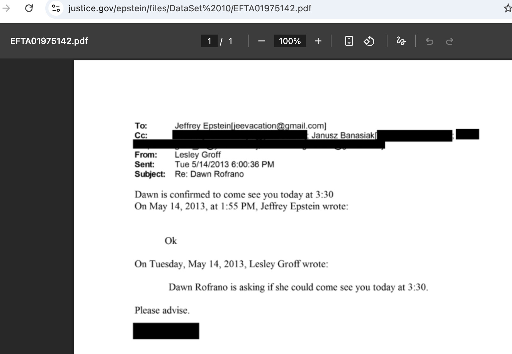 Also, can you please add Dawn Rofrano as a POI in the EE site? There’s a number of correspondence and meetings with this person and they appear to be involved in ‘making cookies’ (which some people think might be code for something).